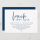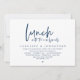 Mark the beginning of your forever with elegance using our contemporary beautiful gorgeous classy Navy blue themed wedding elopement celebration invitation card, "Lunch with the newlyweds". Perfect for couples extending their joyous occasion, this invitation exudes sophistication with a hint of playfulness, setting the stage for a memorable event. Adorned with a timeless modern script design theme, it adds a touch of refined charm to your festivities. Crafted by TeeshaDerrick, this invitation promises to beautifully capture your love story.