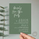 Announce and share your happily ever after in style with our modern forest sage green theme design (Happily ever after party) wedding elopement celebration invitation card. It is ideal for couples who have decided to celebrate their best day. With its sophisticated yet playful design, this invitation is sure to set the tone for an unforgettable event. The invitation card features a modern and minimalist script design theme, adding a touch of timeless elegance to your celebration. Designed by TeeshaDerrick