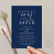 Elegantly announce your happily ever after with our modern navy blue theme, modern classy and elegant wedding reception celebration invitation card, "Happily Ever After", hors d'oeuvres, drinks, dessert, and dancing after the wedding ceremony. Tailored for couples continuing their love story, this invitation strikes a perfect balance of sophistication and charm, setting the scene for an unforgettable event. Featuring a modern contemporary script design, it adds a touch of timeless grace to your special day. Designed by the talented TeeshaDerrick, this invitation is a stylish expression of your enduring love.