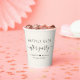 Chic light cream paper cups for your wedding reception and other after wedding parties that feature "Happily Ever After Party" in simple modern typography and a stylish script with swashes, your first names joined by a heart and your reception date.