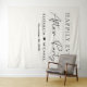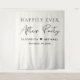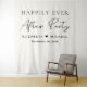 Chic light cream photo backdrop tapestry for your wedding reception or celebration party featuring "Happily Ever After Party" in a mix of simple typography and a modern script and your first names and reception date.