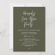 Celebrate the magical evening after “I do” with this modern sophisticated and romantic reception dinner invitation — perfect for honoring the couple as they celebrating their big day. Design Highlights, Modern minimalist aesthetic with casual typography script, “Happily ever after party” headline sets a dreamy, timeless tone, Clean layout with ample space for all essential details (date, time, venue, RSVP info) and white text on olive green background — classic, chic, and effortlessly elegant. Perfect for Intimate wedding dinners, post-wedding celebrations with family and close friends and Couples who love modern calligraphy and understated luxury. Fully customisable on Zazzle — personalize names, dates, locations, and even add your own colors or fonts. Print as flat cards, folded invitations, or digital downloads. Let your guests know this is more than just dinner — it’s the night celebrating our forever. Order now and set the tone for an unforgettable celebration!