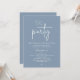 Announce your happily ever after in style with our modern minimalist casual script design wedding reception elopement dinner celebration invitation card in dusty blue theme. Our "Happily Ever After Party" Invitation card is ideal for couples who have decided to elope and want to host a party to celebrate their union. With its sophisticated yet playful design, this invitation is sure to set the tone for an unforgettable event. The invitation card features a minimalist design with a black and white scheme, adding a touch of timeless elegance to your celebration.