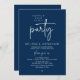 Announce your happily ever after in style with our modern minimalist casual script design wedding reception elopement dinner celebration invitation card in navy blue theme. Our "Happily Ever After Party" Invitation card is ideal for couples who have decided to elope and want to host a party to celebrate their union. With its sophisticated yet playful design, this invitation is sure to set the tone for an unforgettable event. The invitation card features a minimalist design with a black and white scheme, adding a touch of timeless elegance to your celebration.