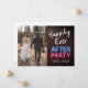 Cool modern elopement or smaller wedding announcement and reception invitation to let family and friends know that you were married in a small intimate wedding ceremony, and to invite them to a wedding reception or party. The front features your wedding day photo and "Happily Ever After Party" in a mix of white script and red and blue typography with a glowing neon lights effect against a brick wall background. On the reverse side you can personalise your message in more detail and your names in a signature-like script.