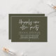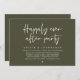 Announce and share your happily ever after in style with our modern beautiful olive green theme design (Happily ever after party) wedding elopement celebration invitation card. It is ideal for couples who have decided to celebrate their best day. With its sophisticated yet playful design, this invitation is sure to set the tone for an unforgettable event. The invitation card features a modern and minimalist script design theme, adding a touch of timeless elegance to your celebration. Designed by TeeshaDerrick