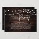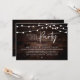 Woth joyius hearts, announce and share your happily ever after in style with our modern rustic string lights, cottage dark wood theme design "Happily ever after party" wedding elopement or reception dinner and dancing celebration invitation card. It is ideal for couples who have decided to celebrate their best day. With its sophisticated yet playful design, this invitation is sure to set the tone for an unforgettable event. The invitation card features a modern and minimalist script design theme, adding a touch of timeless elegance to your celebration. Designed by TeeshaDerrick
