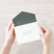 Elegant sage green elopement / private wedding announcement and reception all-in-one invitation with "Happily Ever After Party" in a blend of simple lettering and a chic script, your marriage announcement and reception invitation, and a white tear-away RSVP postcard, all rendered in your choice of genuine gold, silver or rose gold foil.
