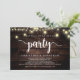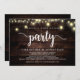 Beautiful Happily Ever After party, Wedding Elopement Announcement / Invitation card, in Rustic farm dark brown wood, String Lights design. This is perfect for your wedding reception and post-wedding celebration party. Add your details in matching font / lettering.
