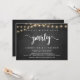 Beautiful Happily Ever After party, Wedding Elopement Announcement / Invitation card, in Modern Rustic Brown chalkboard, String Lights design. This is perfect for your wedding reception and post-wedding celebration party. Add your details in matching font / lettering.