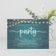 Mark the beginning of your forever with elegance using our rustic string light cottage teal blue green wood themed wedding elopement celebration invitation card, "Happily Ever After Party". Perfect for couples extending their joyous occasion, this invitation exudes sophistication with a hint of playfulness, setting the stage for a memorable event. Adorned with a timeless modern script design theme, it adds a touch of refined charm to your festivities. Crafted by TeeshaDerrick, this invitation promises to beautifully capture your love story.