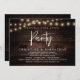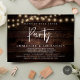 Beautiful Happily Ever After party, Wedding Elopement Announcement / Invitation card, in Rustic farm dark brown wood, with cottage party string lights design. This is perfect for your wedding reception and post-wedding celebration dinner party.