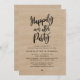 Planning a happily ever after dinner and dancing celebration at the wedding day? Invite your beloved guests with this "Happily ever after party", in modern rustic script design (black and white, cottage brown wood background) themed, indicating the date, time, venue, and RSVP details.