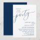 Beautiful Modern script, Wedding Elopement Announcement and celebration Invitation card (Happily Ever After Party), in Navy Blue scheme. This is perfect for your wedding reception and post-wedding party celebration. Add your details.