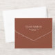 Elegant terracotta elopement or small wedding announcement and post-wedding reception all-in-one invitation featuring "Happily Ever After Party" showcased in a blend of simple lettering and a chic modern script, your marriage announcement and reception invitation, and a tear-away RSVP response postcard, all rendered in your choice of genuine gold, silver or rose gold foil.