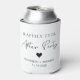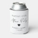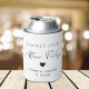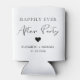 Chic white can cooler favour for your wedding reception or after party celebration featuring "Happily Ever After Party" in a mix of simple typography and a modern script and your first names and reception date. You can change the colours of the text, heart and background by editing in the design tool.