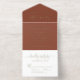Elegant terracotta casual wedding reception all-in-one invitation that features "Happily Ever After Party" showcased in simple lettering and a chic script with swashes, your marriage announcement and reception details, and a white tear-away RSVP postcard, all rendered in your choice of genuine gold, silver or rose gold foil.