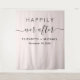 Simple light pink wedding reception or party photo backdrop tapestry with "Happily Ever After" in a mix of simple typography and a trendy script with swashes, your first names and the event date.