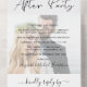 Elegant elopement or private wedding announcement and reception all in one invitation to announce your marriage to friends and family and to invite them to a post-wedding reception or celebration party. Your personalised announcement and invitation overlays your wedding day photo, and "Happily Ever After Party" is written in a mix of simple typography and a modern script. Input your wedding website URL address to create a QR code for your guests to RSVP online and obtain information on accommodations, directions, any night before parties and other details. A tear away RSVP postcard provides a convenient and eco-friendly and envelope-free response from your guests.