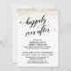 Here's a festive choice for your post-wedding celebration needs. Over an editable white background, I've placed a typography graphic that reads "happily ever after" featuring an elaborate script font embellished with hearts. Behind this header, faux gold glitter seems to fall from above. Use the template fields to add your own details and click to customise further if you'd like to make any additional modifications. All layers are unlocked to allow for all the positioning and sizing control you desire.