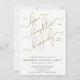 This beautiful, modern Black White and Gold Happily Ever After Rehearsal Dinner Invitation features a faux gold leaf calligraphy script reading 'To Love, Laughter, and Happily Ever After' as the main design element. The design is beautifully complemented by the modern all cap sans serif font in black, on the crisp, white background, announcing the rehearsal cocktail party date and location. The back of the invite features a modern black and white watercolor artwork, to complete the sophisticated design.