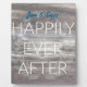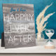 Happily Ever After. The perfect sentiment for weddings, anniversaries, and vow renewals. Rustic grey distressed wood background with white lettering.