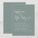 Minimalist sage green wedding reception invitation featuring "Happily Ever After Party" in a chic white script, your details in modern white lettering, and your names in classic white serif typography.