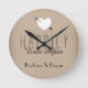 I needed a clock for my bathroom. Yes, my bathroom. So that it would "fit" and look right in the space, I needed something that was frameless, and contemporary. This clock has the water/nature/serene look I wanted. It looks great on my bathroom wall! The blue is well suited to resemble water and the beige matches the vanity. I decided to customize it with inspirational words....perfect! This was my first order, and now, I will certainly come back for future purchases. Very nice, the printing is beautiful and I'm pleased with it.