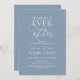 Announce your happily ever after in style (Happily ever after) with our modern casual contemporary dusty blue script design wedding elopement celebration invitation card. Our Happily Ever After Party Celebration Invitation card is ideal for couples who have decided to elope and want to host a party to celebrate their union. With its sophisticated yet playful design, this invitation is sure to set the tone for an unforgettable event. The invitation card features a minimalist elegant design scheme, adding a touch of timeless elegance to your celebration. Designed by TeeshaDerrick