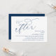 Mark the beginning of your forever with elegance using our contemporary classy navy blue theme wedding elopement celebration invitation card, "Happily Ever After". Perfect for couples extending their joyous occasion, this invitation exudes sophistication with a hint of playfulness, setting the stage for a memorable event. Adorned with a timeless modern script design theme, it adds a touch of refined charm to your festivities. Crafted by TeeshaDerrick, this invitation promises to beautifully capture your love story.