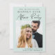 Elegant light mint green save the date announcement for your post-elopement or small wedding reception or celebration party. The front features your wedding photo and "Save The Date For Our Happily Ever After Party" in simple typography and a chic modern script. Under your photo, add your first names and wedding date. On the reverse, personalise your save the date message in more detail and add your names in a signature-like script.