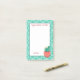 This Post-it® note pad has a southwest look complete with a cactus plant, in the lower right corner. in the background there a teal pattern and text reads, "Happiness Blooms from Within", which can be customised. There is also an area at the bottom you can customised.