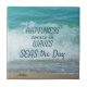 Happiness comes in Waves! Seas the Day! A beautiful aqua blue sea and white ocean wave is the background for this inspirational ceramic tile. A coastal beach theme decorative tile to use individually or in combination for crafts and diy projects, in kitchens or bath backsplash or showers. As a daily reminder and motivation to live each day to its fullest.