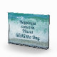Happiness comes in Waves SEAS the Day! Perfect for anyone in your life to congratulate a promotion, graduation, retirement or birthday. This beautiful beachy acrylic photo display features breaking surf and a white splashing wave on a sandy beach against tropical aqua blue water with a coastal play on words: Carpe diem! Seize the Day! SEAS the Day! This image is original ocean photography by JLW_PHOTOGRAPHY