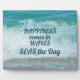 This beautiful beachy plaque is an inspirational reminder that "Happiness comes in Waves Seas the Day ". An ocean wave is breaking and splashing in a tropical sea of aqua blue water. A motivational "Seize the Day", but with a Beach Life Vibe.