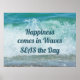 This beautiful coastal poster has a play on words that is inspirational and fun. Happiness comes in Waves Seas the Day. The white wave splashing and breaking along a sandy beach adds humour and beauty to any room, office or dorm. It is a bright blue and white seascape captured on this poster. This image is original beach photography by JLW_PHOTOGRAPHY.