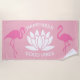 Happiness Good Vibes Pink Flamingo Beach Towel