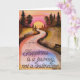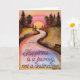 Capture the beauty of life's path with this warm watercolor card. The artwork features a winding road leading towards a vivid pink and orange sunset, framed by dark pine trees and a small park bench, symbolizing reflection. The quote, "Happiness is a journey, not a destination," is written in flowing script over the path. This design is perfect for encouraging mindfulness, celebrating a new chapter, or sending an inspirational message about enjoying the present moment. The beautiful sunset colors and artistic style make it an ideal gift for travel lovers or anyone on a path of personal growth.