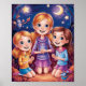 This heartwarming poster depicts three girls of different ages laughing and playing together. The background is a soft watercolor wash, suggesting a sense of carefree adventure. The overall message is one of finding joy in everyday moments and the importance of cherished friendships.