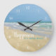 Trendy beach house wall clock with beautiful seaside photography featuring a pretty sandpiper standing at the edge of the ocean waves on a sunny summer day. Cute beach house decor for a modern vacation home filled with ocean art. This lovely seashore clock features gorgeous typography and cool white numbers for the perfect summer time.
