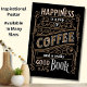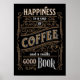 Happiness is Cup of Coffee & Good Book Brown Black Poster