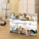 Photo collage with 6 of your favourite photos and your personalised text. "happiness is" is hand lettered in cute, elegant dark grey calligraphy and the template is set up for you to finish the quote. The sample wording reads happiness is having you as our daddy which you can customise to suit. Your pictures are displayed as 4x landscape and 2x square / instagram format. Perfect for father's day, christmas or any time you want a lovely photo gift for your daddy. This design is also available in dark blue, black or gold calligraphy.