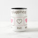 "Live, Love, Laugh is the best form of Happiness. It's too cute to pass up! Design features three sets of hearts outlined with squares and matching text."