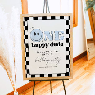 One Happy Dude Smile Face 1st Birthday Photo Invitation