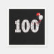 100th birthday party with bold black and white happy and number 100 text on black with party balloon bouquet.