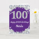 Happy 100th Birthday Purple and Silver Glitter Card with personalised name. For further customisation, please click the "Customise it" button and use our design tool to modify this template.