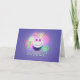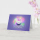 Card with my original design of a smiling birthday cake with balloon eyes, ten candles and text "Happy 10th Birthday!" Verse inside.
