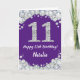 Happy 11th Birthday Purple and Silver Glitter Card with personalised name. For further customisation, please click the "Customise it" button and use our design tool to modify this template.
