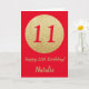 Happy 11th Birthday Red and Gold Glitter Card with personalized name. For further customization, please click the "Customize it" button and use our design tool to modify this template.