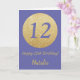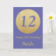 Happy 12th Birthday and Gold Glitter Card with personalized name. For further customization, please click the "Customize it" button and use our design tool to modify this template.